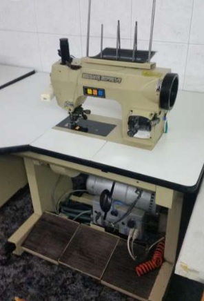Máquina de PUNTET marca Sewmaq Modelo 781-7 de costura de adorno tipo Puntet o simulación de puntada a mano. Completa con bancada y motor.